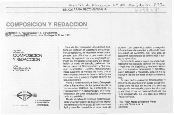 Autores chilenos - Bahamondes W., Yolanda - Composición y redacción - Nowodworsky C., Edmundo