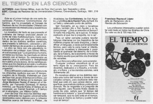 El Tiempo en las ciencias [artículo] Francisco Raynaud López.