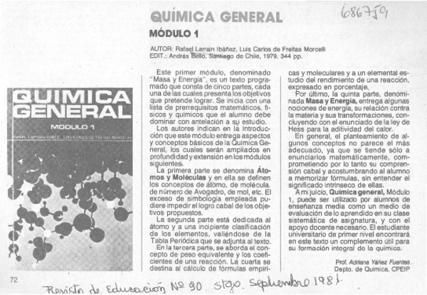 Freiras Morcelli, Luis Carlos de - Larraín Ibañez, Rafael - Química general - Autores chilenos