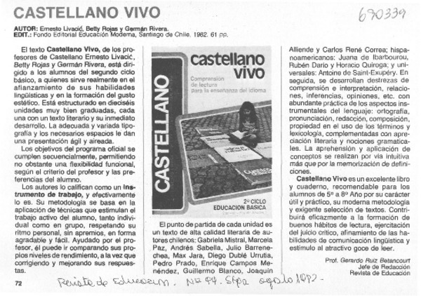 Castellano vivo [artículo] Gerardo Ruiz Betancourt.
