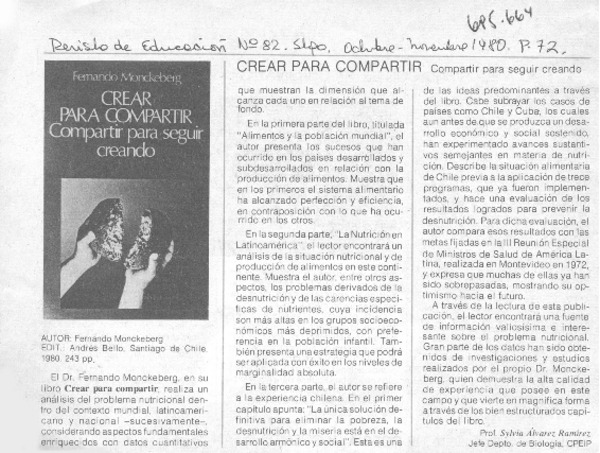 Autores chilenos - Monckeberg, Fernando - Crear para compartir
