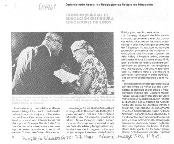 Consejo mundial de educación distingue a educadores chilenos. [artículo]