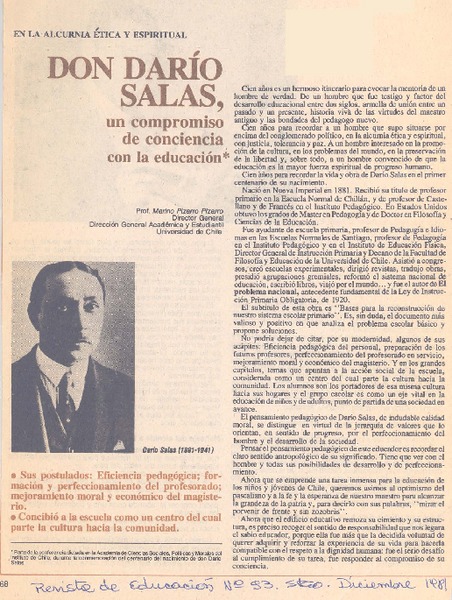 Don Darío Salas, un compromiso de conciencoa con la educación [artículo] Marino Pizarro Pizarro.