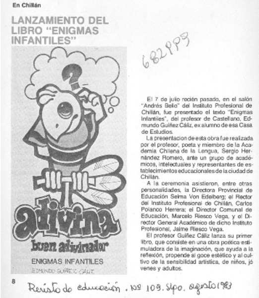 Presentación del lirbo "Historia de la literatura infantil chilena". [artículo]