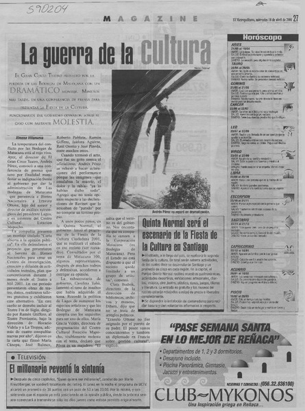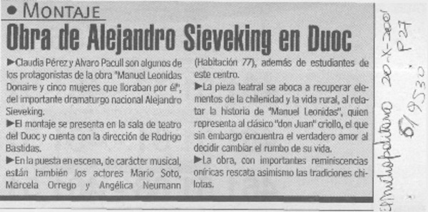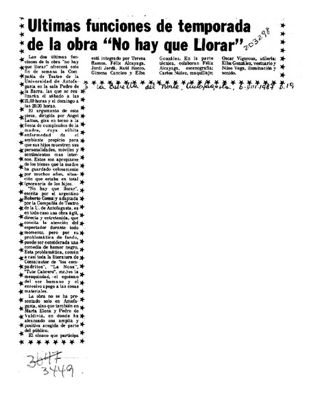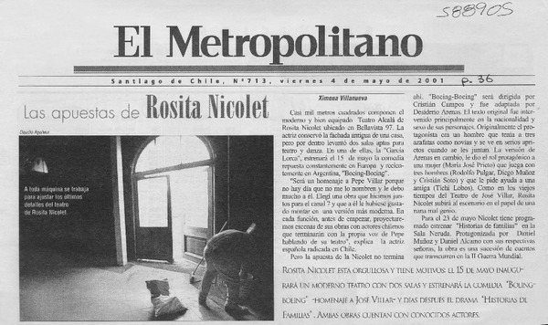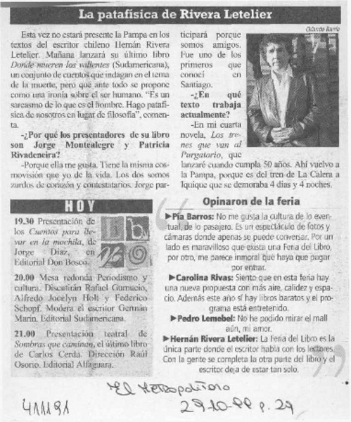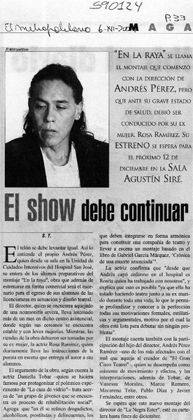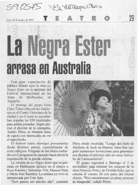 Celedón presentará nuevo montaje en enero del 2000 [artículo] Paola Pino.