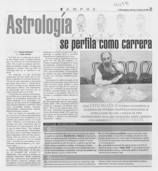 Astrología se perfila como carrera [artículo] Ximena Villanueva