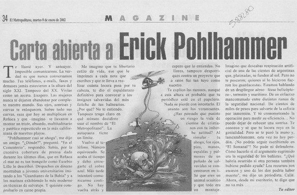 Carta abierta a Erick Pohlhammer [artículo] Tu editor