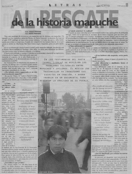 Al rescate de la historia mapuche [artículo] Ximena Villanueva.