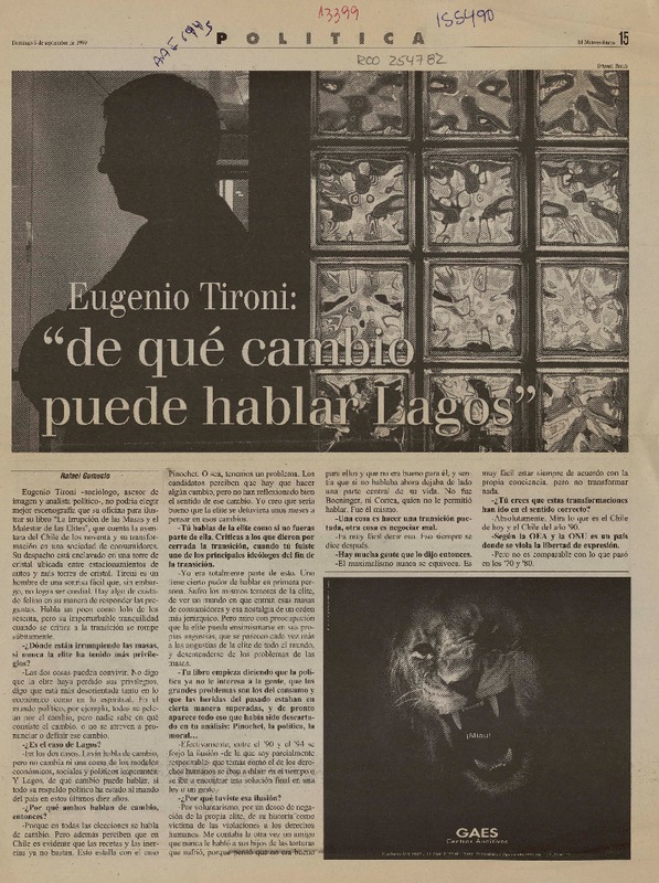 "No creo en el cambio del milenio" [artículo] Marcelo Cabello