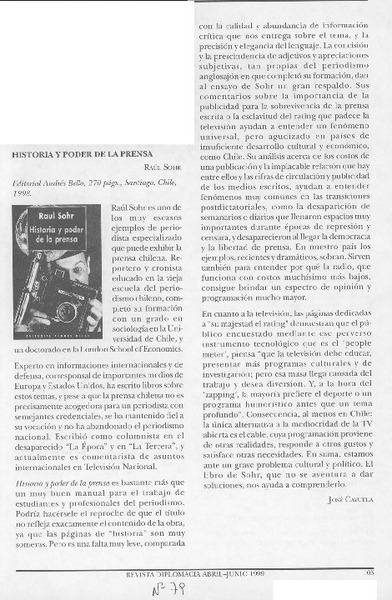 Historia y poder de la prensa - Sohr, Raúl - Autores chilenos