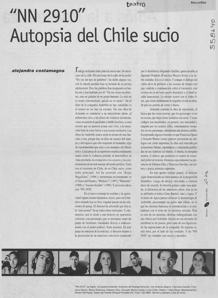 "NN 2910" Autopsia del Chile sucio [artículo] Alejandra Costamagna
