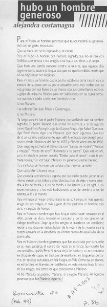 Hubo un hombre generoso [artículo] Alejandra Costamagna.