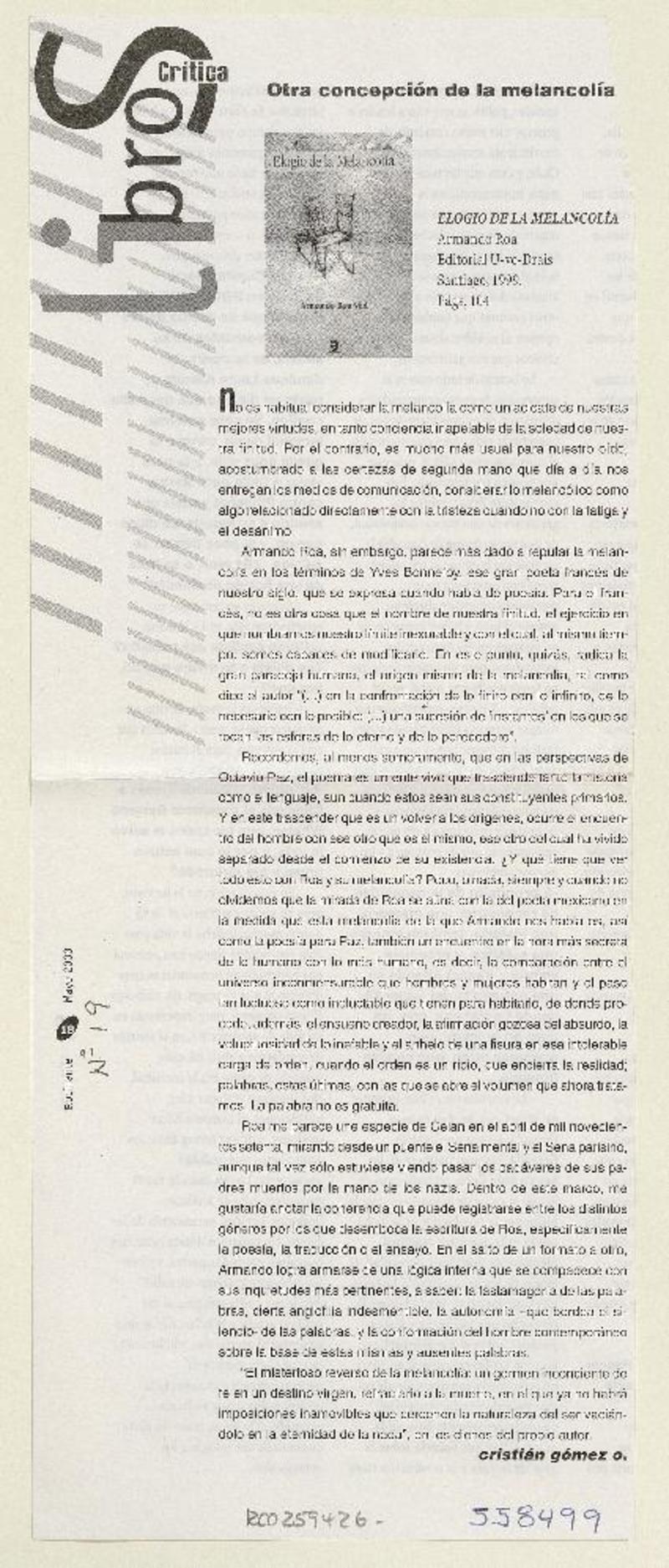 Otra concepción de melancolía [artículo] Cristián Gómez O.