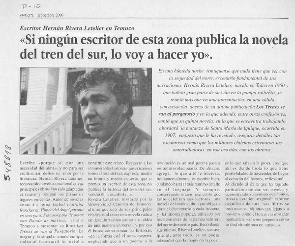 "Si nungún escritor de esta zona publica la novela del tren del sur, lo voy a hacer yo" [artículo]