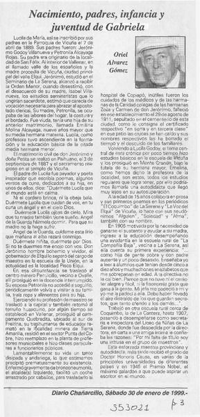 Nacimiento, padres, infancia y juventud de Gabriela [artículo]