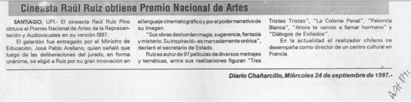 Cineasta Raúl Ruiz obtiene Premio Nacional de Artes [artículo]