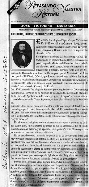 Lastarria, hombre público, crítico e innovador social [artículo] Julio Sepúlveda Rondanelli
