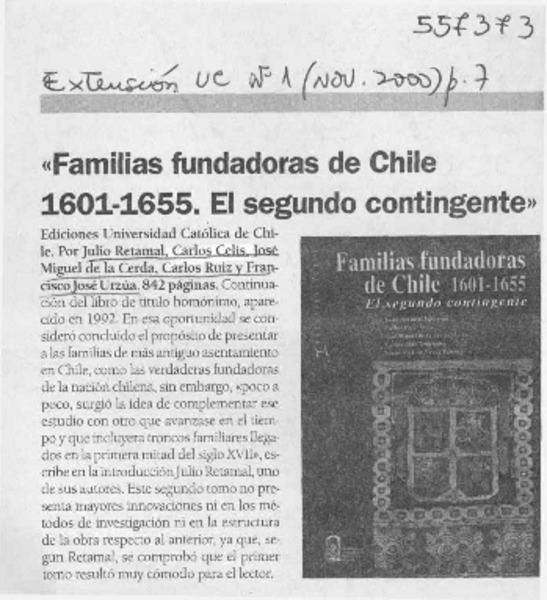"Familias fundadoras de Chile 1601-1655. El segundo contingente". [artículo]