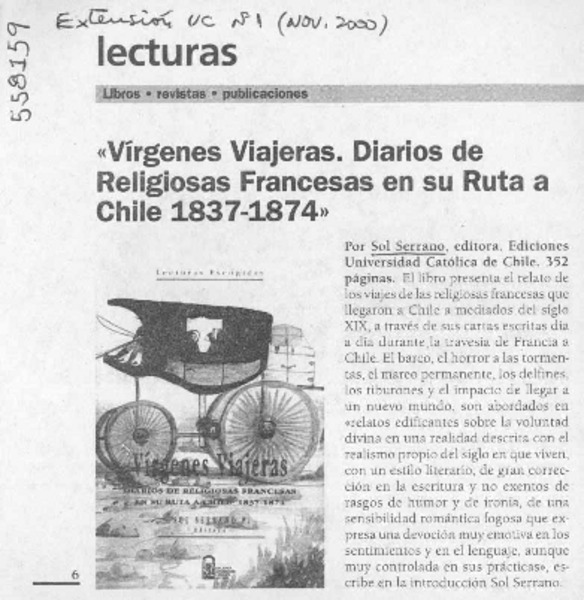 Autores chilenos - Serrano, Sol - Vírgenes viajeras, diarios de religiosas francesas en su ruta a Chile 1837- 1874