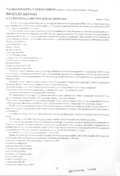 Braulio Arenas o la mancha luminosa que se desplaza [artículo] Roberto Yáñez.