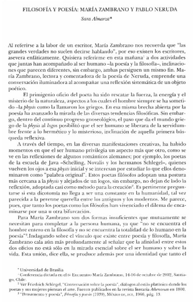 Filosofía y poesía: María Zambrano y Pablo Neruda [artículo] Sara Almarza.