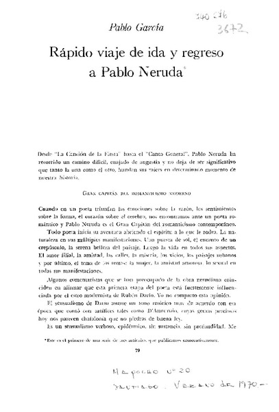 Rápido viaje de ida y regreso a Pablo Neruda [artículo] Pablo García.