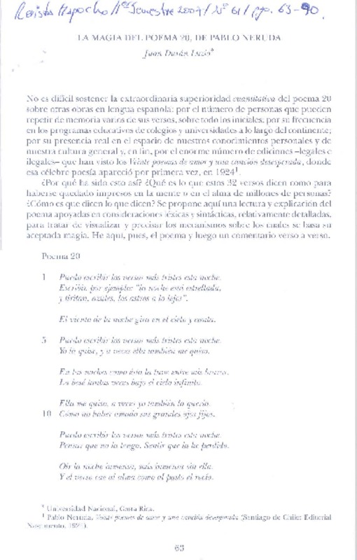 La magia del Poema 20, de Pablo Neruda [artículo] Juan Durán Luzio.