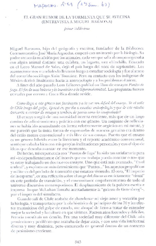 Autores chilenos - Entrevistas - Barahona, Miguel - Puntos de fuga