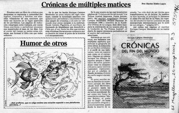 Crónicas de múltiples matices [artículo] Marino Muñoz Lagos