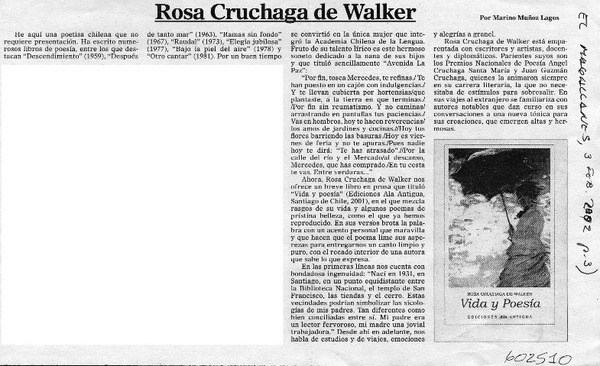 Rosa Cruchaga de Walker [artículo] Marino Muñoz Lagos