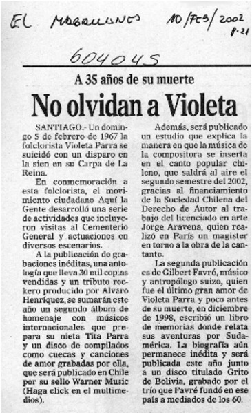 Homenajean a Violeta Parra en Estados Unidos [artículo]