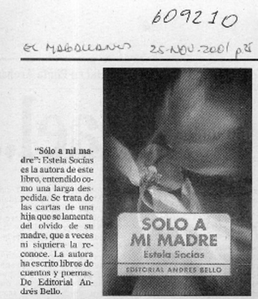 Sólo a mi madre - Socías, Estela - Autores chilenos
