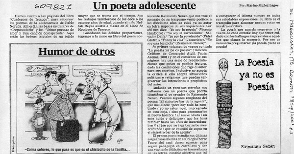 Un poeta adolescente [artículo] Marino Muñoz Lagos