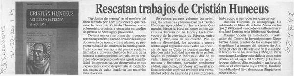 Rescatan trabajos de Cristián Huneeus [artículo]