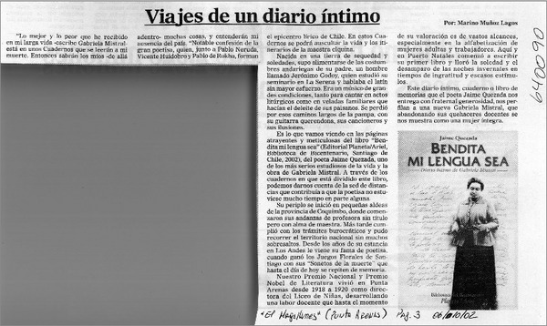 Viajes de un diario íntimo [artículo] Marino Muñoz Lagos