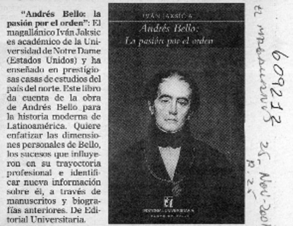 Autores chilenos - Jaksic, Iván - Andrés Bello, la pasión por el orden