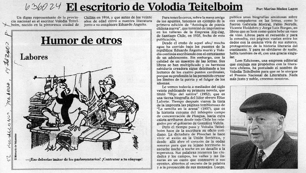 El escritorio de Volodia Teitelboim [artículo] Marino Muñoz Lagos