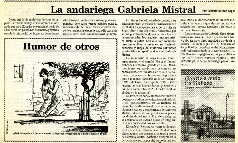 La andariega Gabriela Mistral [artículo] Marino Muñoz Lagos