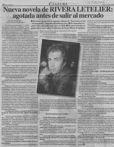 Nueva novela de Rivera Letelier, agotada antes de salir al mercado [artículo] Ana Josefa Silva V.