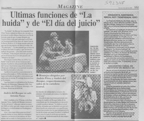 Últimas funciones de "La huida" y de "El día del juicio" [artículo]