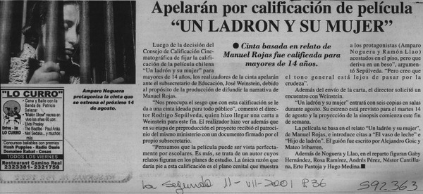 Apelarán por calificación de película "Un ladrón y su mujer" [artículo]