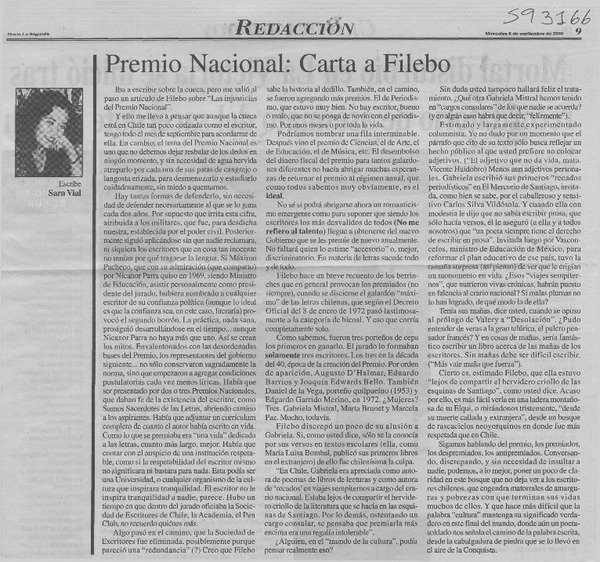 Premio Nacional, carta a Filebo [artículo] Sara Vial