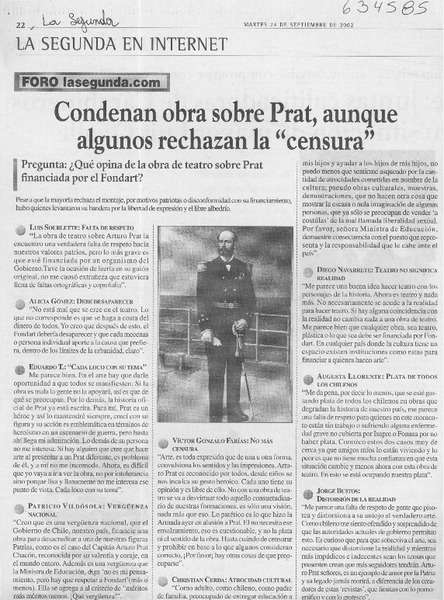 Condenan obra sobre Prat, aunque algunos rechazan la "censura" [artículo]