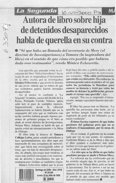 Autora de libro sobre hija de detenidos desaparecidos habla de querella en su contra [artículo]
