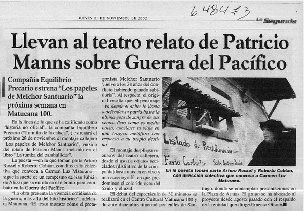 En mayo debuta nueva obra del autor de "Nemesio Pelao" [artículo] Javier Ibacache V.