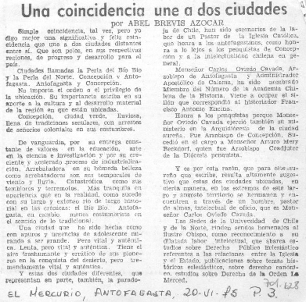 Una coincidencia une a dos ciudades [artículo]