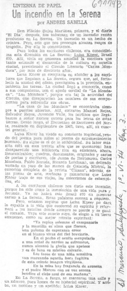 Un incendio en La Serena [artículo] Andrés Sabella.