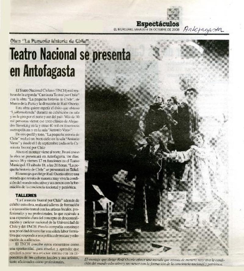 Verano teatral tendrá la Chile. [artículo]