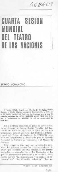 Cuarta sesión mundial del teatro de las naciones [artículo] Sergio Vodanovic.