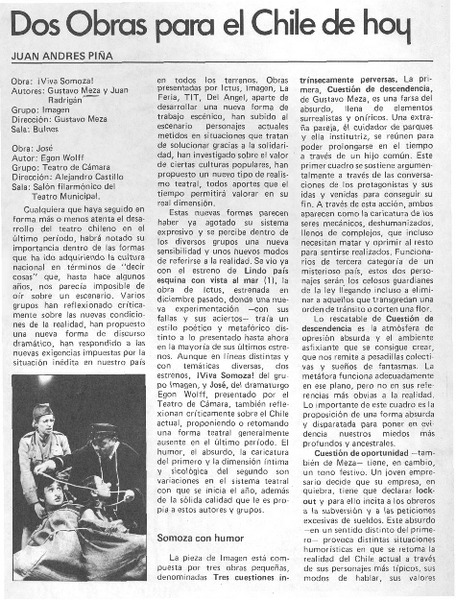 Dos obras para el Chile de hoy [artículo] Juan Andrés Piña.